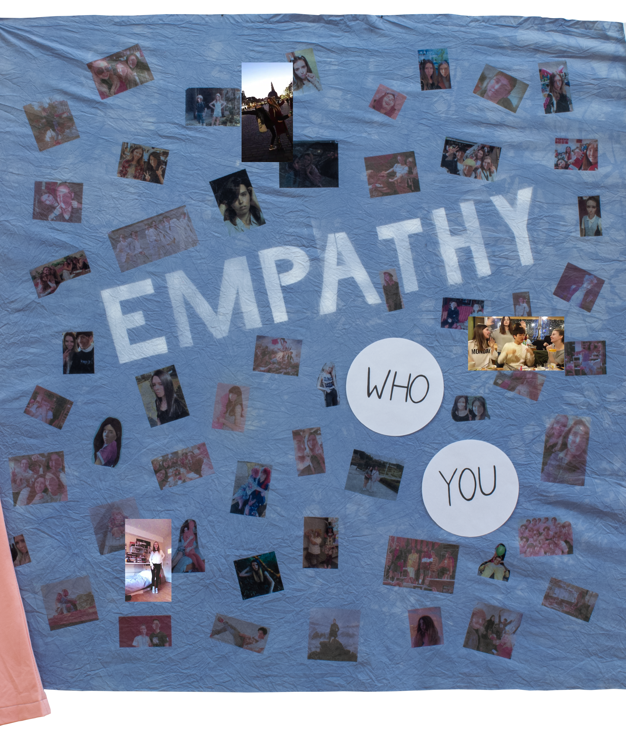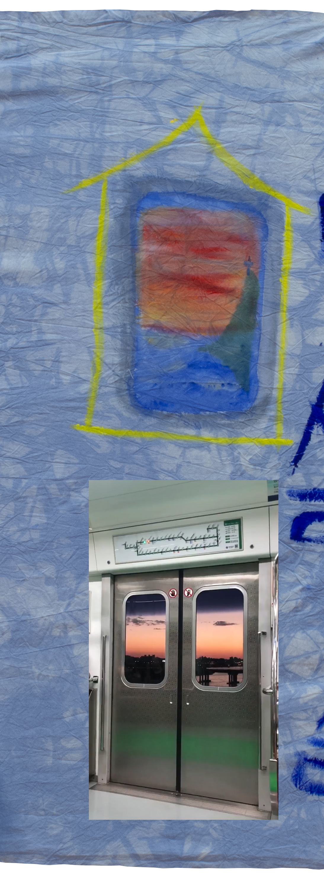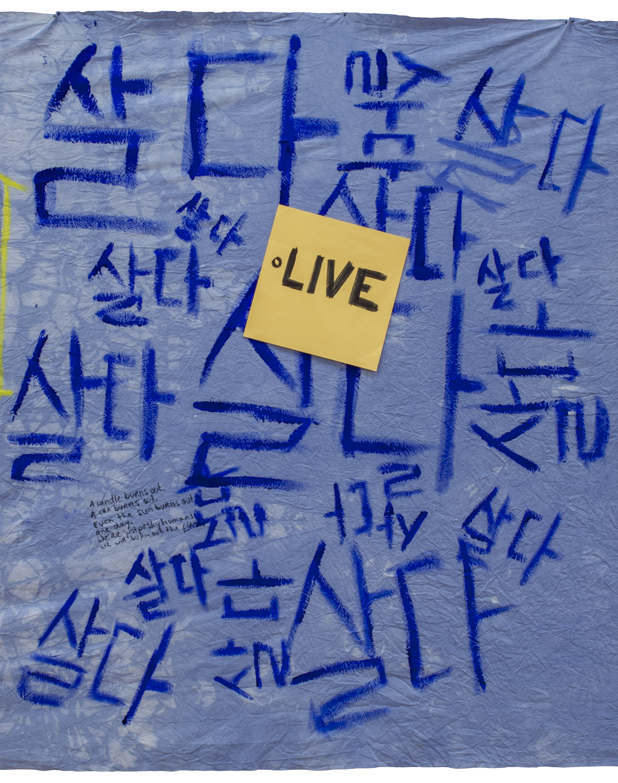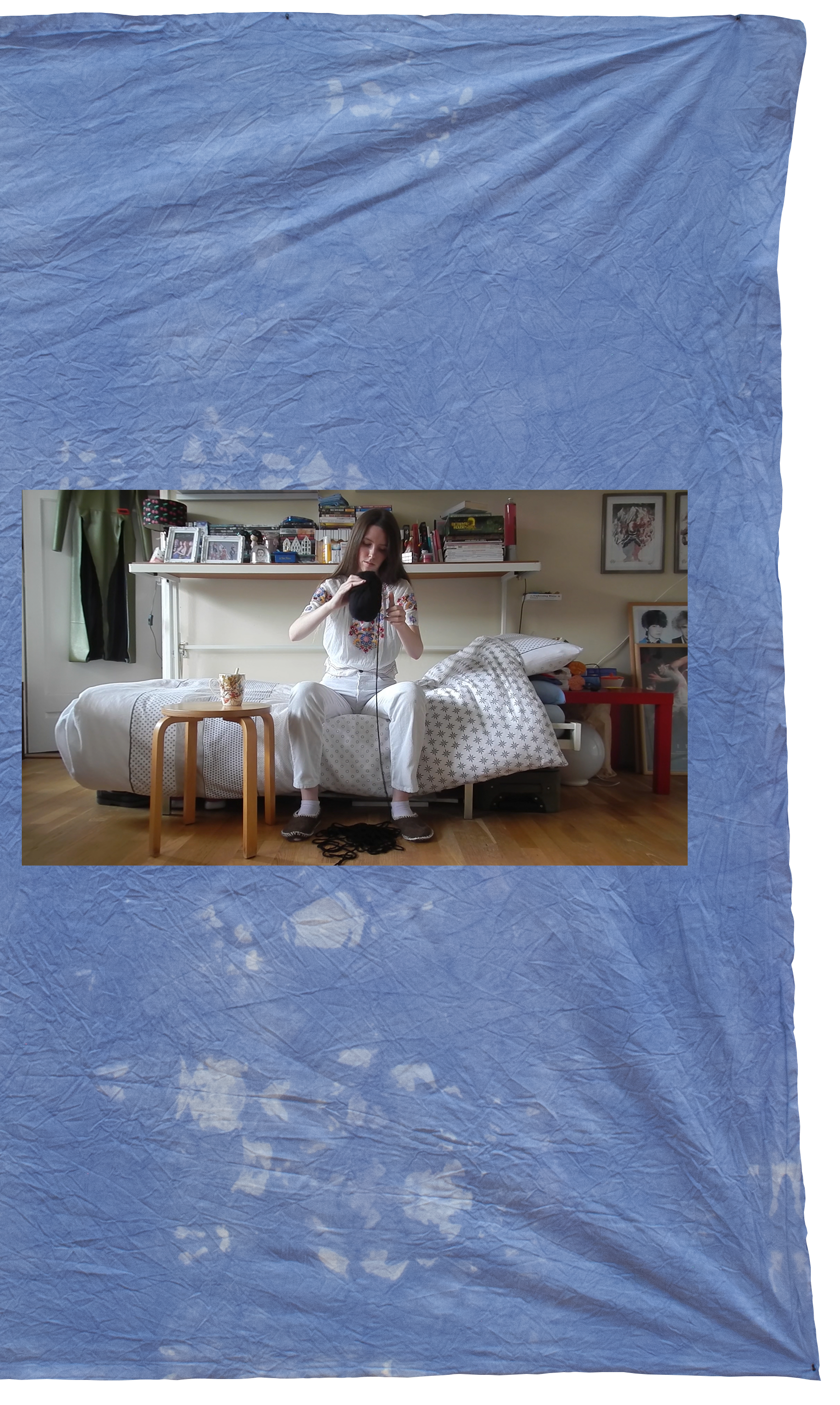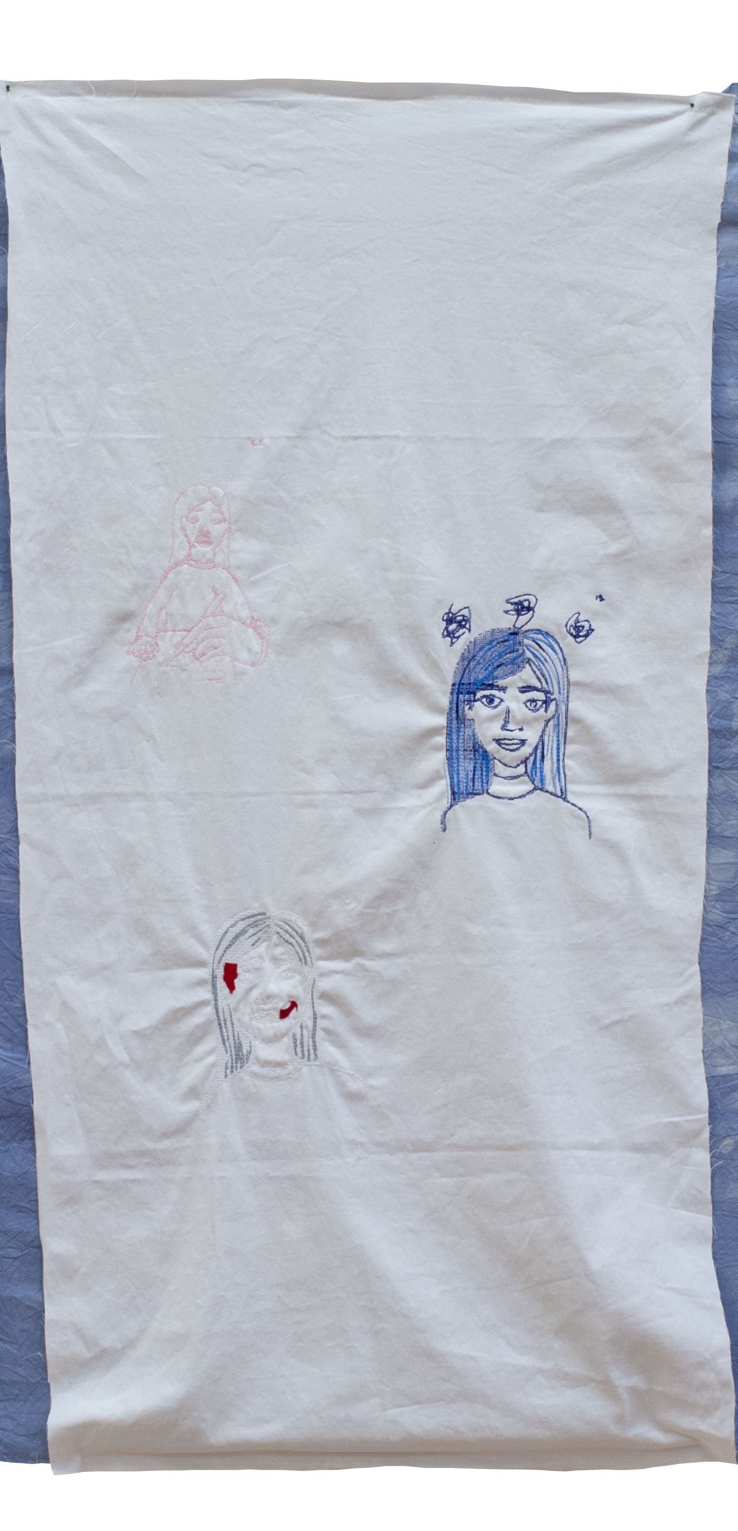Materials: Film, audio, fabric, embroidery, acrylic paint, spray paint,